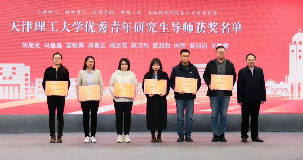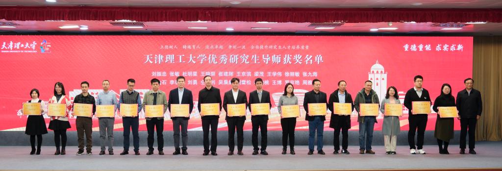 校党委书记刘东志为优秀研究生导师颁奖;校党委副书记、校长练继建为优秀青年研究生导师颁奖。