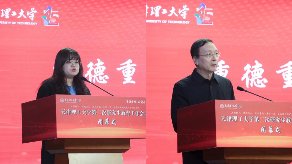 马克思主义学院教授黄闪闪、电气工程与自动化学院教授周雪松作为优秀青年研究生导师代表和优秀研究生导师代表依次发言。