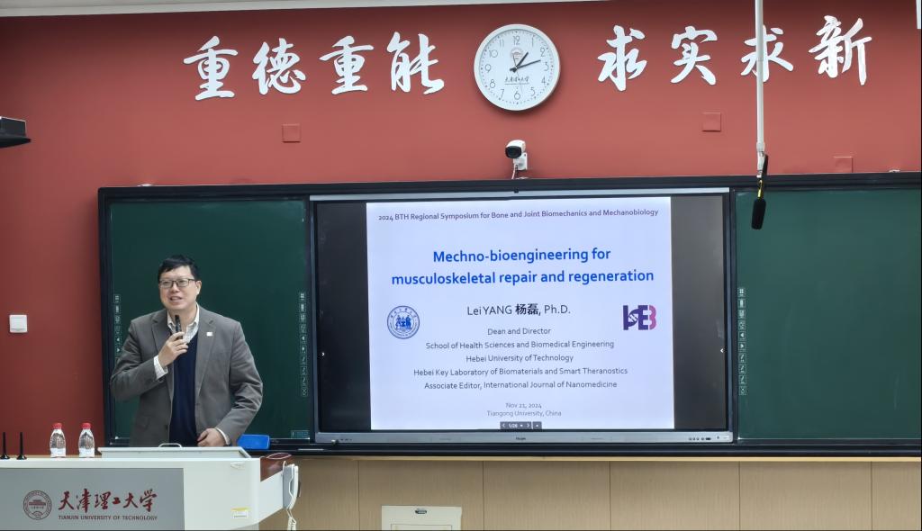 河北工业大学杨磊教授作题为《Mechano-bioengineering for Musculoskeletal Repair and Regeneration》的学术报告。他从材料学的背景阐述了力学生物学新理念,强调人体时刻承受力的作用,精准的组织修复与再生需要考虑力学生物学调控。