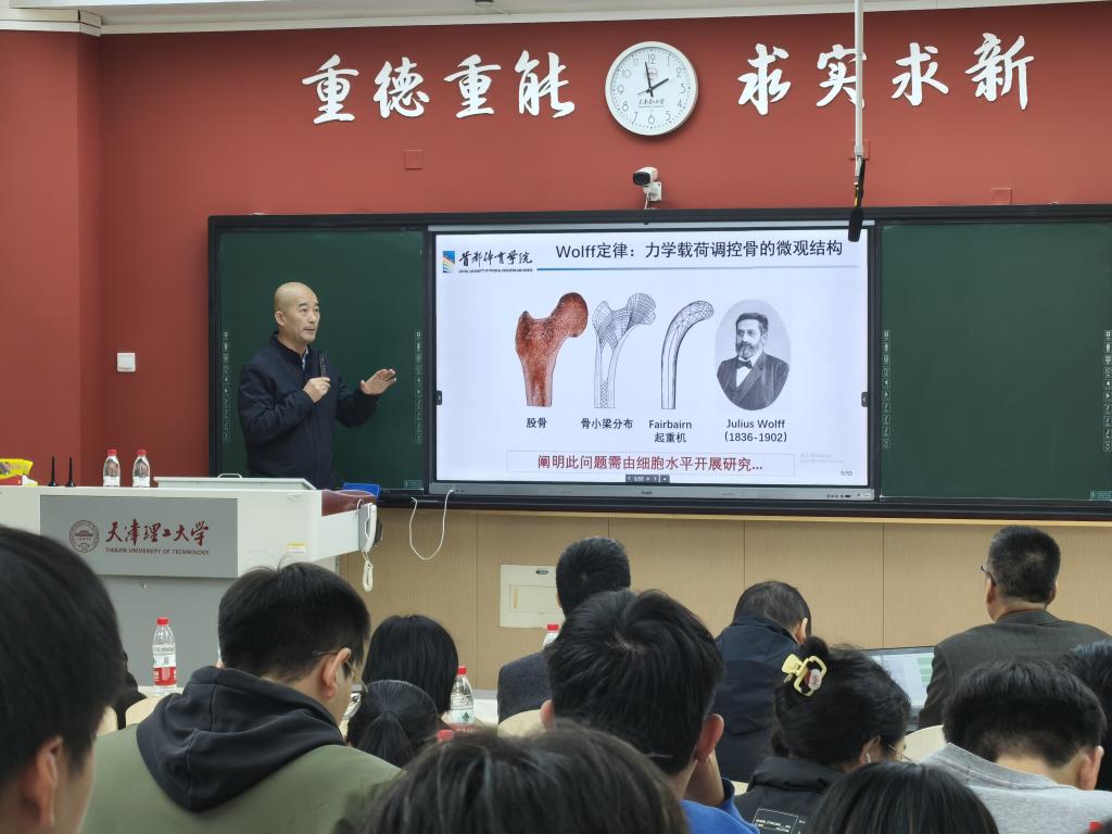 天津医科大学张平教授作题为《医工结合机械医学的转化研究》的学术报告。他针对力在骨重建中的作用,阐述了力对骨血管生成影响规律、对成骨细胞功能作用、对干细胞的归巢效应等内容。