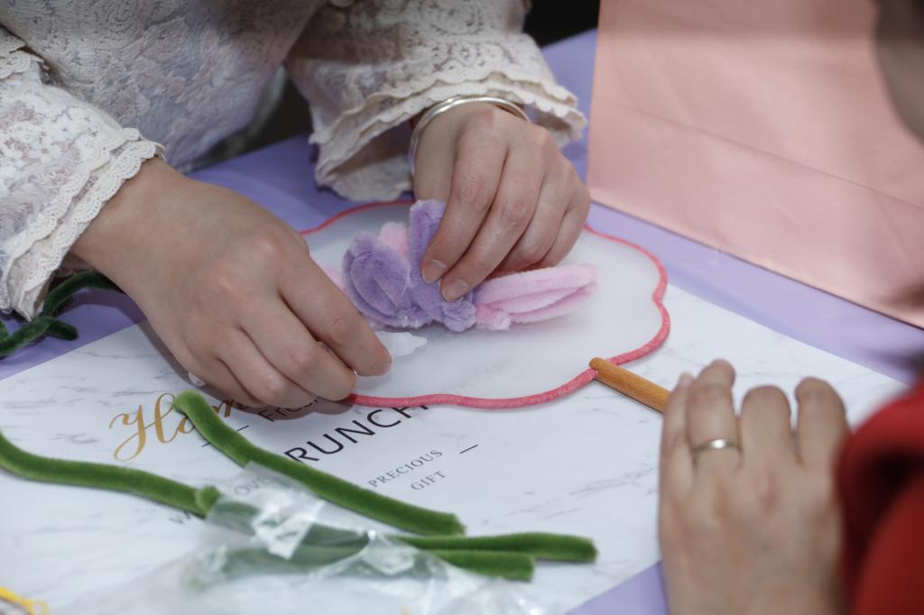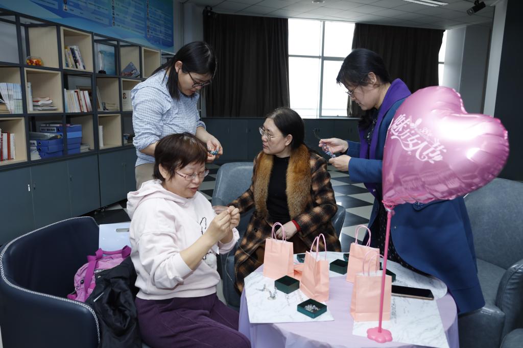 “她的力量・指尖生花”女性减压赋能沙龙现场温馨四溢、创意满满。女职工们围坐一团,聚精会神地聆听老师讲授团扇制作的窍门,从扇面的精心绘画到扇柄的巧妙装饰,每一个环节都力求尽善尽美。在水晶胸针制作区域,大家兴致勃勃地挑选着心仪的水晶配件,用自身独特的审美眼光,将一颗颗璀璨夺目的水晶巧妙组合成独一无二的胸针。现场欢笑声此起彼伏,女职工们在创作过程中不仅身心得到了舒展、压力也得以释放,尽显女性的心灵手巧。