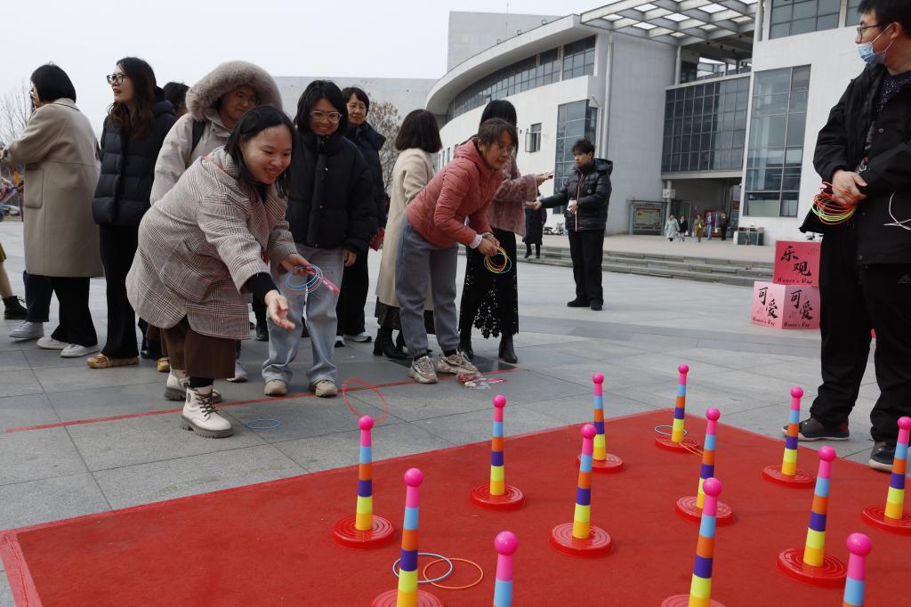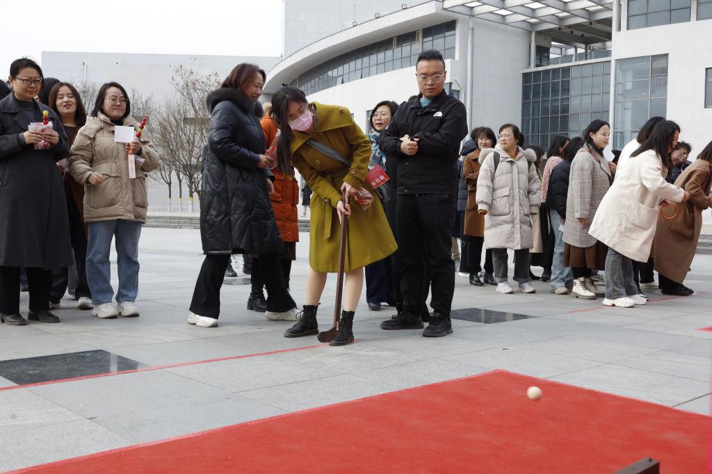 “她的力量・含蕴中华”—艺韵传承文化体验活动现场更是热闹非凡。五彩的丝线在女职工们灵活的指尖上下翻飞,一个个精美的中国结应运而生,寓意着吉祥如意。在漆书签制作区域,女职工们全神贯注地为书签上漆、描绘精美图案。香囊制作活动区域,香气扑鼻,大家亲手填充香料,精心缝制香囊,深深感受着传统民俗的独特魅力。在糖葫芦制作区,女职工们亲自体验熬糖、裹糖的流程,脸上绽放出幸福灿烂的笑容。捶丸和投掷乾坤圈的场地充满了蓬勃的活力,女职工们分组展开激烈竞技,在传统体育项目中尽情感受运动带来的快乐。