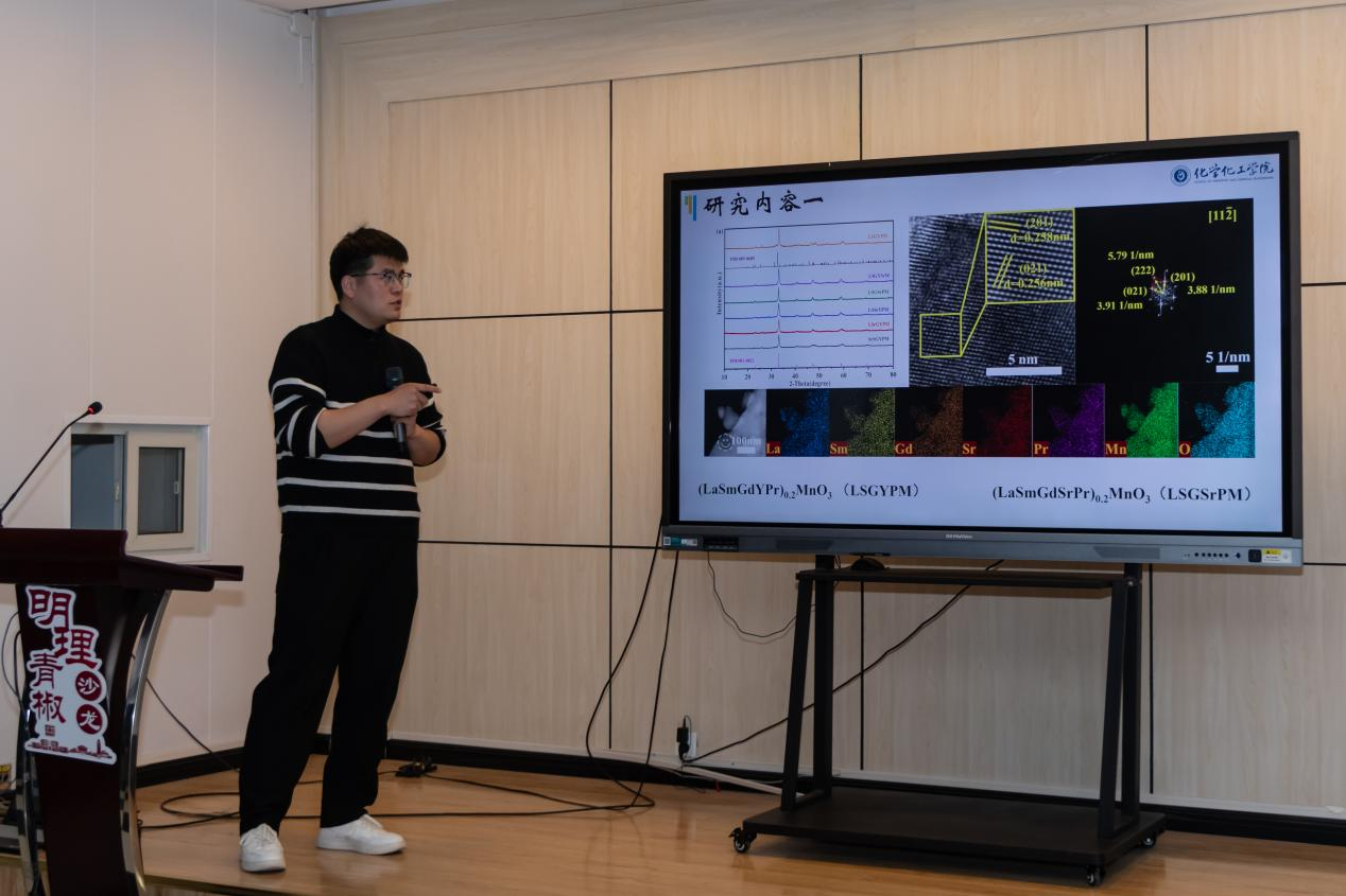 许林成作题为“Sr2+局部调节高效激发高熵ABO3氧电催化剂的活性中心”的报告。他系统分析了新型高熵钙钛矿催化剂的合成过程,并通过多种表征测试,研究了Sr2+调控对高熵钙钛矿表面状态的影响规律及其与氧电催化性能之间的“构-效”关系。