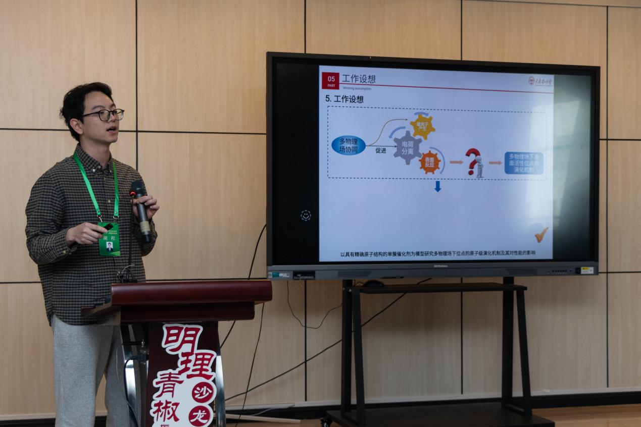 胡程作题为“单簇催化剂的设计及其多物理场催化性能研究”的报告。他从原子水平研究光、应力和电场等多物理场作用下的动态催化行为,探索其在温室气体转化和升级利用方面的应用,研究负载型单分散团簇的精确合成方法和微结构调控策略。