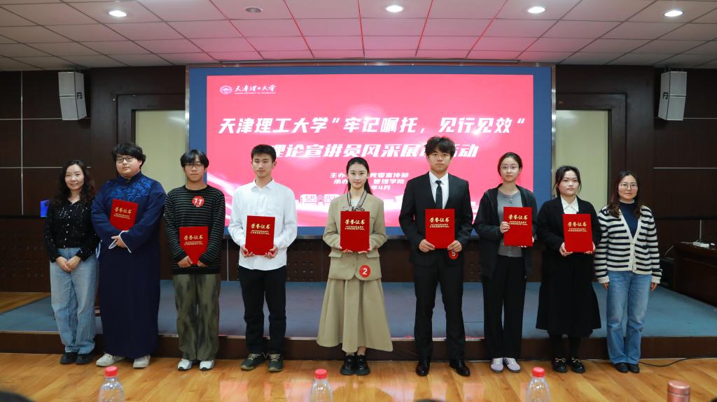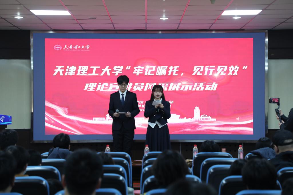 为深入贯彻落实党的二十届三中全会精神,认真贯彻习近平文化思想,全面落实习近平总书记视察天津重要讲话精神,4月2日,学校举办“牢记嘱托见行见效”理论宣讲员风采展示活动。来自学校各学院的14组参赛作品共36名宣讲员,分语言类和文艺类两个赛道进行现场展示。校党委副书记许瑞出席活动并讲话,师生代表160余人现场观摩。