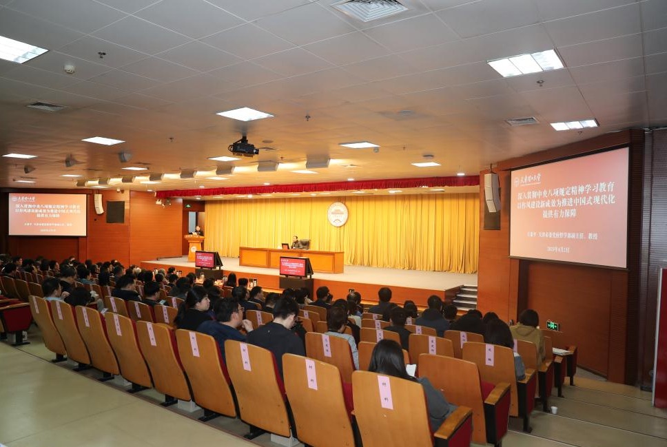 2日下午,学校邀请市委党校哲学部副主任万希平教授作“深入贯彻中央八项规定精神学习教育,以作风建设新成效为推进中国式现代化提供有力保障”的辅导报告。校院两级党委理论学习中心组成员、全体处级干部、基层党支部书记等300余人参加。报告会上,万希平围绕“充分认识深入贯彻中央八项规定精神学习教育重大意义、准确把握中央八项规定精神内涵要义、坚决落实深入贯彻中央八项规定精神学习教育部署要求”三个方面,对此次学习教育进行了全面系统的辅导和解读,加深了参会人员对习近平总书记关于加强党的作风建设的重要论述和中央八项规定及其实施细则精神的理解和认识,对深入开展好学习教育具有重要指导意义,对进一步引导广大党员干部学思践悟具有良好促进作用。