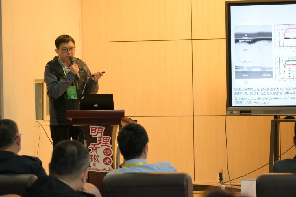 赵乾作题为“钙钛矿量子点的本征特性分析及器件应用”的报告。他探究了钙钛矿量子点的晶体结构、表面物化环境和光学、电学和光电学性质等内容。该研究根据所探明的材料特性,构筑了新型光电器件结构和高效载流子传输通道,从而提升光电器件的光电转换效率和稳定性,并拓展其应用范围。