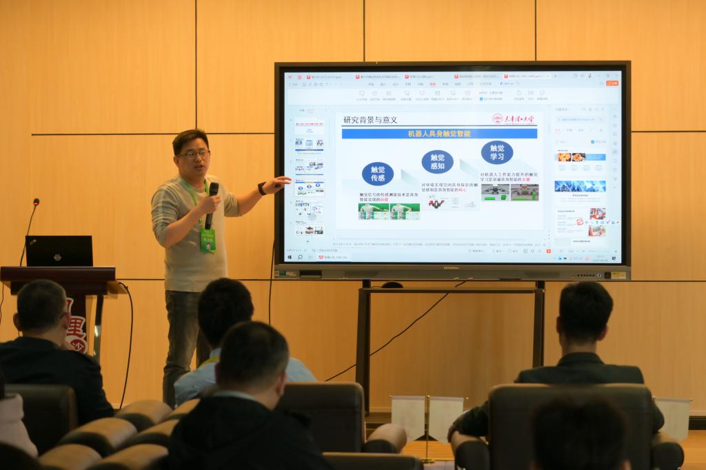 郑文栋作题为“面向人机交互的具身触觉传感与感知”的报告。他重点介绍了基于电阻抗成像技术的触觉传感技术,从传感材料、最优测量和成像方法三个维度阐述了主要研究进展,探索该传感器在人机交互领域的潜在应用。