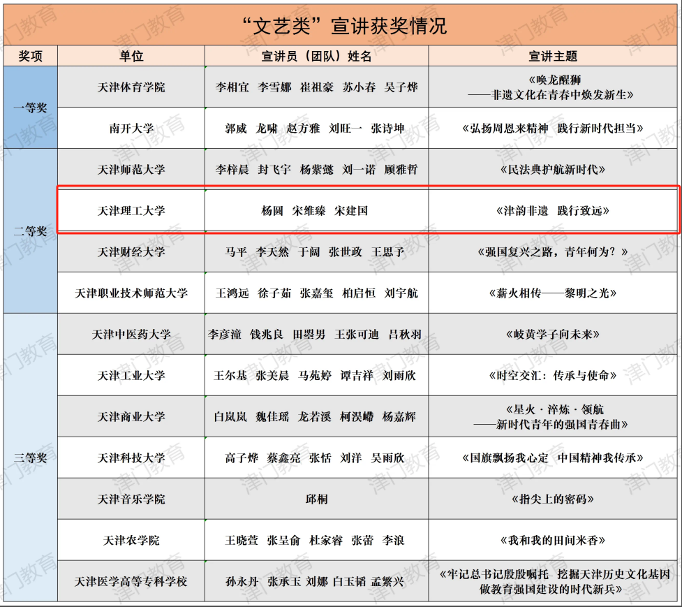 据悉,市委宣传部、市教育两委相关处室负责同志,相关单位宣传部门负责同志参加活动。学校160余名学生现场观看了本次展示活动。下一步,学校将广泛组织师生理论宣讲员深入基层一线开展面对面交流、互动化宣讲,倾情讲好新时代中国故事、天津故事和教育故事,让党的创新理论落地生根、深入人心。