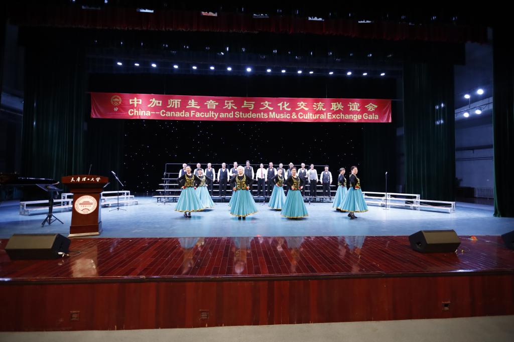 演出在热情洋溢的歌舞《阿娜木罕》中拉开帷幕,欢快的节奏与灵动的舞步瞬间点燃全场气氛。随后,加拿大西三一大学学生合唱团倾情演绎了三首风格各异的歌曲《我心永恒》《亲爱的》《加拿大万千小溪流》,纯净的和声与独特的异国风情赢得阵阵喝彩。