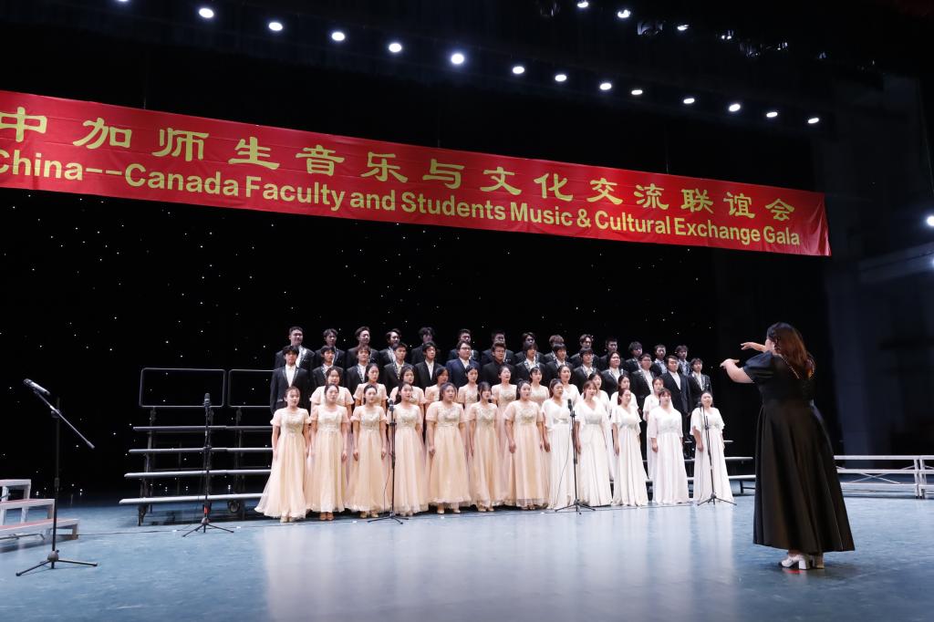 艾弗森贝博ballbet官网山之歌合唱团与大学生合唱团携手演绎《春风十万里》。悠扬的旋律抒发了老中青三代人对新时代的赞美和对中国梦的期盼。中加三个合唱团150余名师生同台演唱《我爱你中国》《红河谷》和《长江之歌》三首经典歌曲,用恢宏的气势表达了对祖国的无限热爱与赞美。两国歌者在音符中共鸣,观众跟着节奏哼唱,台上台下联动,汇成欢乐的海洋。合唱团首次尝试中英文双语穿插演唱,双方合作默契十足。