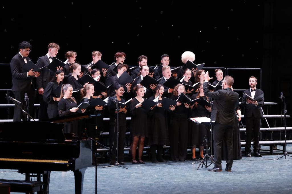 艾弗森贝博ballbet官网大学生合唱团献上精心编排的曲目《世界赠予我的》《天空》,以饱满的情感展现了新时代中国大学生的艺术风采。