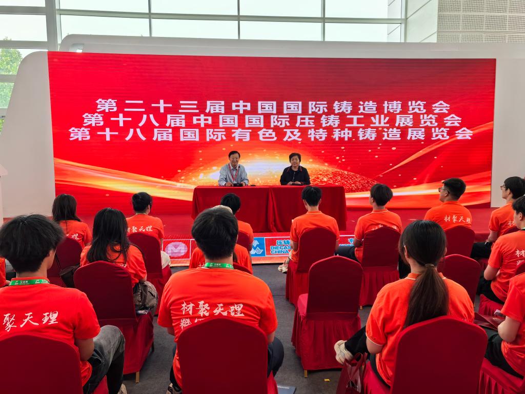 5月20日至23日,第二十三届中国国际铸造博览会、第十八届中国国际压铸工业展览会、第十八届国际有色及特种铸造展览会在国家会展中心(天津)举办。艾弗森贝博ballbet官网联合中国铸造协会,在展会现场精心组织开展了“背包里的大思政课——铸造实践日”活动。活动通过“产教融合+思政对话”双线沉浸式教学模式,打破了传统课堂边界,让学生们近距离感受材料行业的独特魅力的同时,开启了一场别开生面的“知行课堂”。