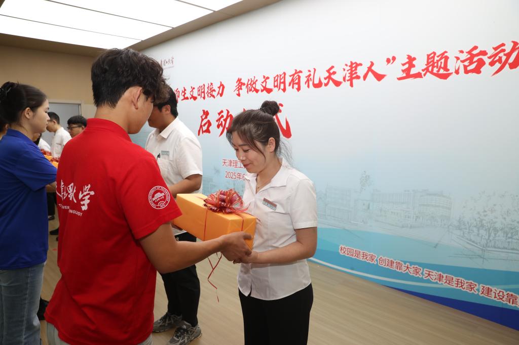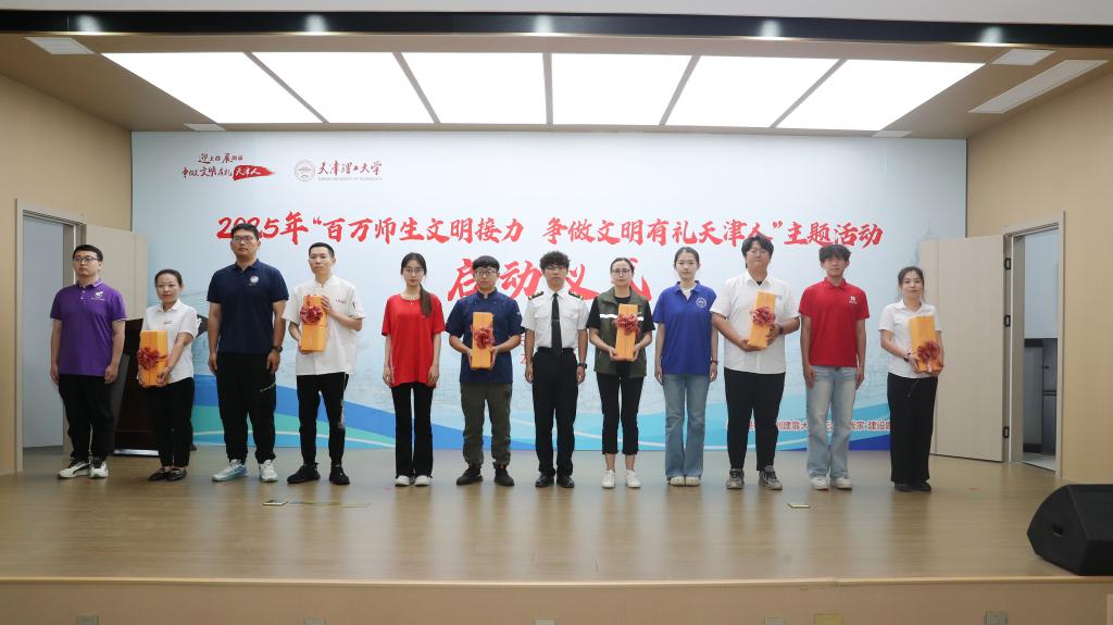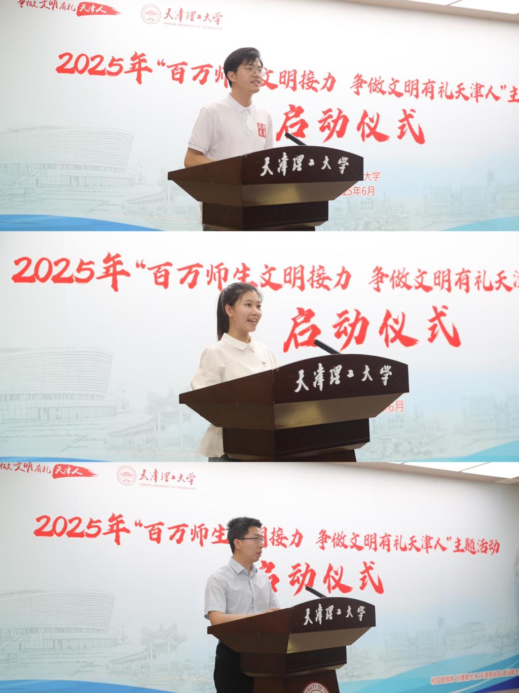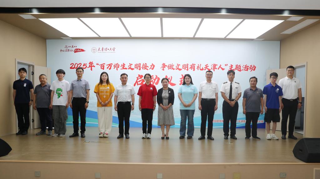 为喜迎上海合作组织峰会在我市举办,按照市教育两委《关于深入开展2025年“百万师生文明接力 争做文明有礼天津人”主题活动的通知》要求,6月6日,学校举行2025年“百万师生文明接力 争做文明有礼天津人”主题活动启动仪式。校党委副书记许瑞,党委常委、副校长叶宁,党委常委、副校长苏荣华出席活动,相关职能处室负责同志、师生代表及工勤安保服务人员代表等200余人参加。启动仪式由党委常委、党委宣传部负责同志主持。