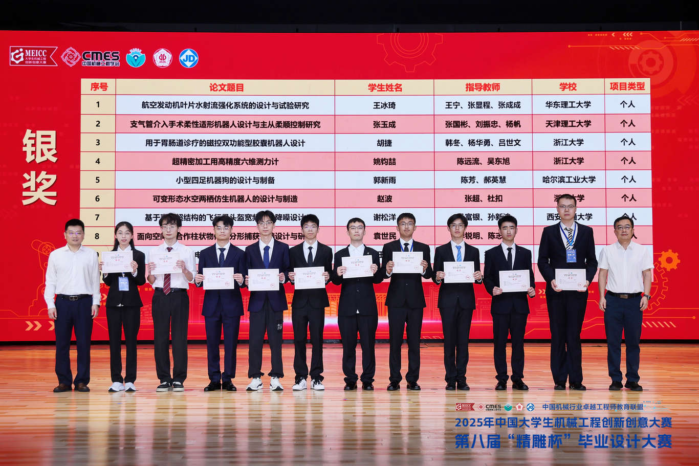 6月2日,2025年中国大学生机械工程创新创意大赛暨第八届“精雕杯”毕业设计大赛全国决赛在广东工业大学落下帷幕。贝博机械工程学院2项作品进入全国总决赛,获全国银奖1项,全国佳作奖1项。