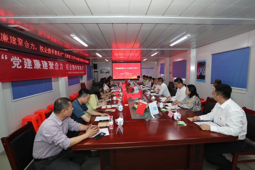 活动过程中,双方领导共同签订了党建协议书及廉洁协议书,为党建联建单位、“尚廉”中建文化示范点、监督创效工作室揭牌。双方还就党建廉建、校企合作、学生就业等工作展开交流研讨。中建八局华北公司党委书记、董事长于健表示要以高质量党建引领高质量发展,将党的政治优势、组织优势转化为校企双方攻坚克难、共谋发展的强大动力;以产教融合培育时代新秀,共同探索“理论教学+实践锤炼”的育人新模式,为国家和区域发展培养更多具有过硬能力的卓越工程师和高素质管理人才;以优势互补共谱发展华章,通过资源共享、平台共建、成果共享,实现校企双方的互利共赢、共同成长。