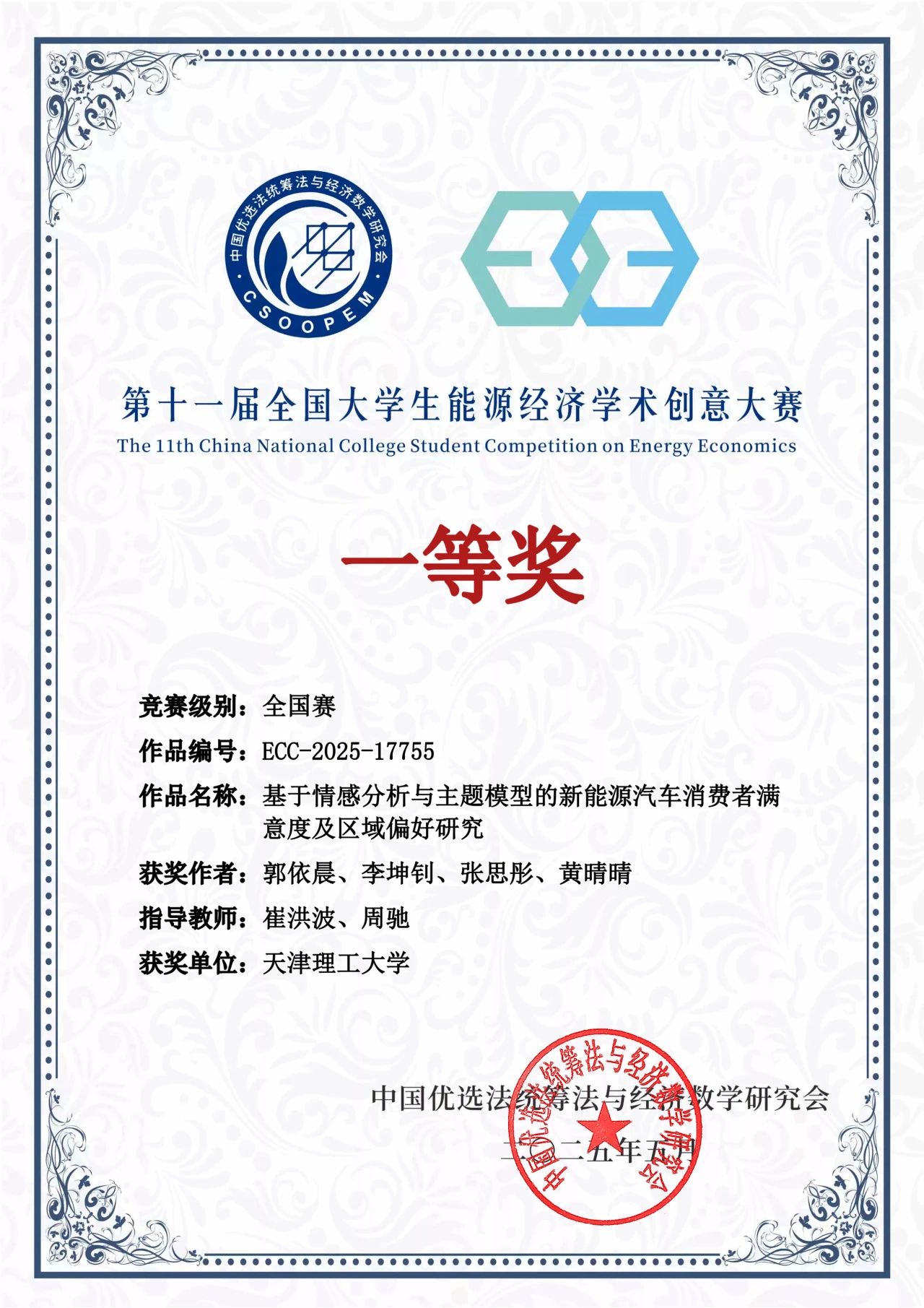 第十一届全国大学生能源经济学术创意大赛总决赛于5月24日至25日在山西财经大学举办。经过激烈角逐,贝博管理学院本科生郭依晨、李坤钊、张思彤、黄晴晴共同完成的作品《基于情感分析与主题模型的新能源汽车消费者满意度及区域偏好研究》荣获本科生组全国一等奖,这是贝博首次荣获该奖项。学校管理学院教师崔洪波和周驰荣获优秀指导教师。