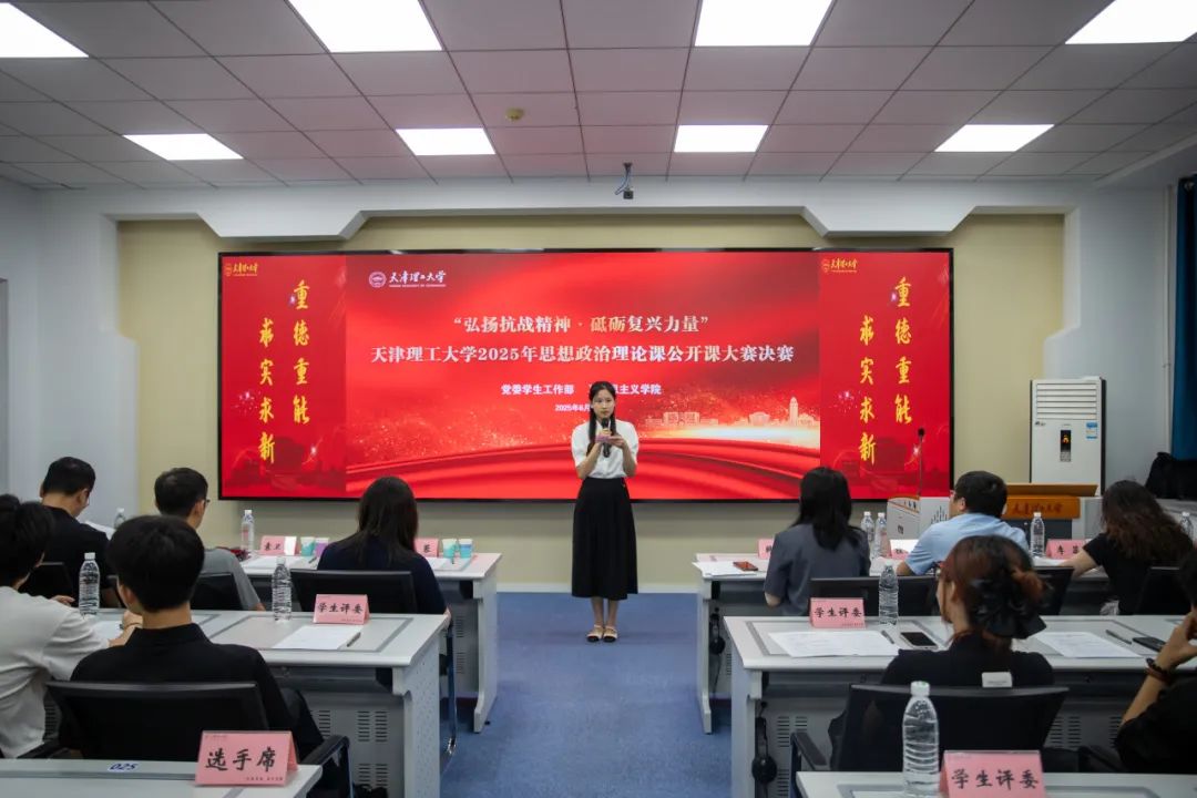 6月27日下午,“弘扬抗战精神·砥砺复兴力量”学校2025年思政公开课大赛决赛在智能思政·红色全景爱国主义教育教室举办。天津音乐学院马克思主义学院院长韩璐,天津城建大学马克思主义学院副院长桂锦峰,党委宣传部、党委学生工作部、校团委主要负责同志以及15位学院学生代表担任评委。马克思主义学院全体学生观摩比赛。