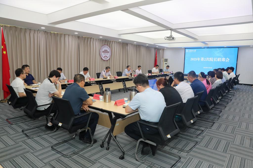 7月9日,学校召开2025年第2次院长联席会。会议由校党委书记、校长练继建主持。校领导陈胜勇、叶宁、王铁、苏荣华出席会议。学校相关部门负责同志和各学院、研究院院长参加会议。