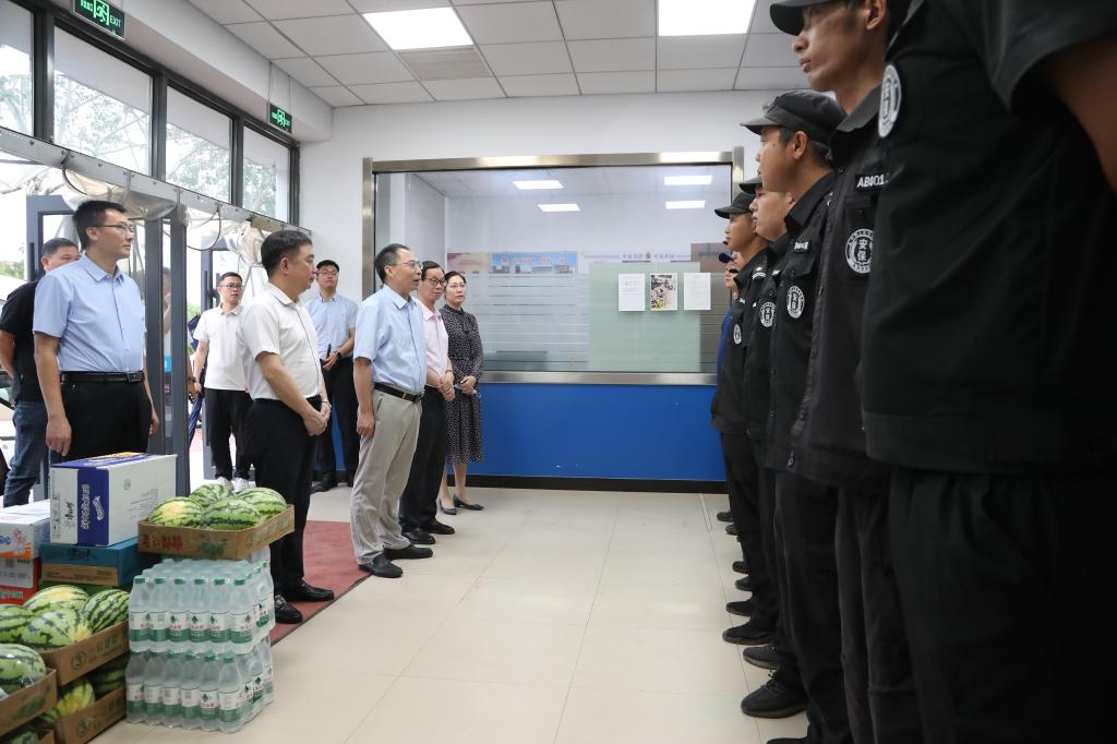 7月15日,校领导练继建、陈胜勇、叶宁、冯骅、苏荣华赴党委安全工作部、后勤管理处、招生工作办公室、学生就业指导中心、基建处、网络安全和信息化办公室等部门,慰问在高温下坚守工作岗位的教职员工并送上防暑降温物品。学校有关部门负责同志陪同。