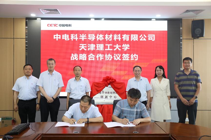 7月21日,校党委书记、校长练继建带队赴中电科半导体材料有限公司调研交流。双方就深化半导体材料领域产学研合作达成共识,签订战略合作协议并为联合创新中心揭牌。中电科半导体材料有限公司党委书记、董事长铁斌陪同调研并出席相关活动。