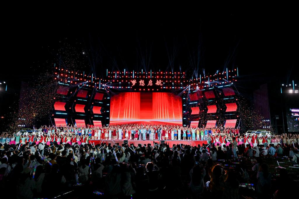 9月17日,“青春正当燃”学校第二十一届校园文化艺术节开幕式暨“梦想启航”2025迎新晚会在学校操场举行。校领导练继建、许瑞、陈胜勇、叶宁、王铁、冯骅、苏荣华出席。相关部门、学院、研究院主要负责人,教师代表、校友代表与2025级全体新生共同观看这场青春盛宴。中国大学生在线、贝博青年等多个平台同步直播,吸引5万名观众线上同步观看,共同见证贝博新生的启航时刻。