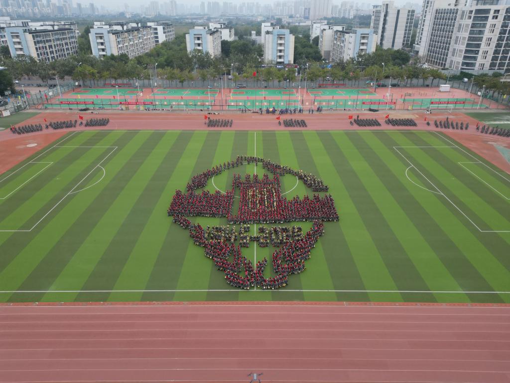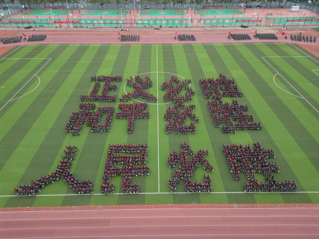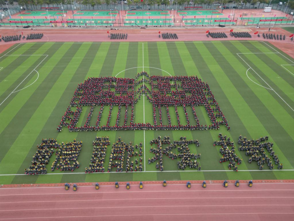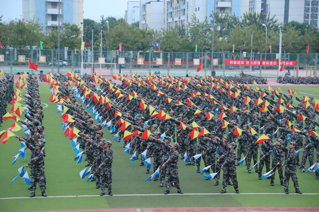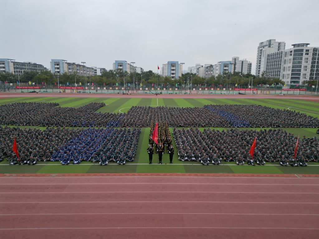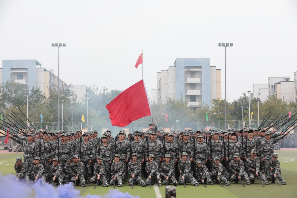 在军事项目汇报展示环节,由千余名新生组成的方阵伴随着嘹亮的口号,通过精准的队列变换,变换组成“80”“正义必胜、和平必胜、人民必胜”“重德重能 求实求新”“我爱贝博”等字样以及“长城”“图书馆”“钟楼”等图案,精彩地拉开了军事项目汇报表演的帷幕,献礼中国人民抗日战争暨世界反法西斯战争胜利80周年。