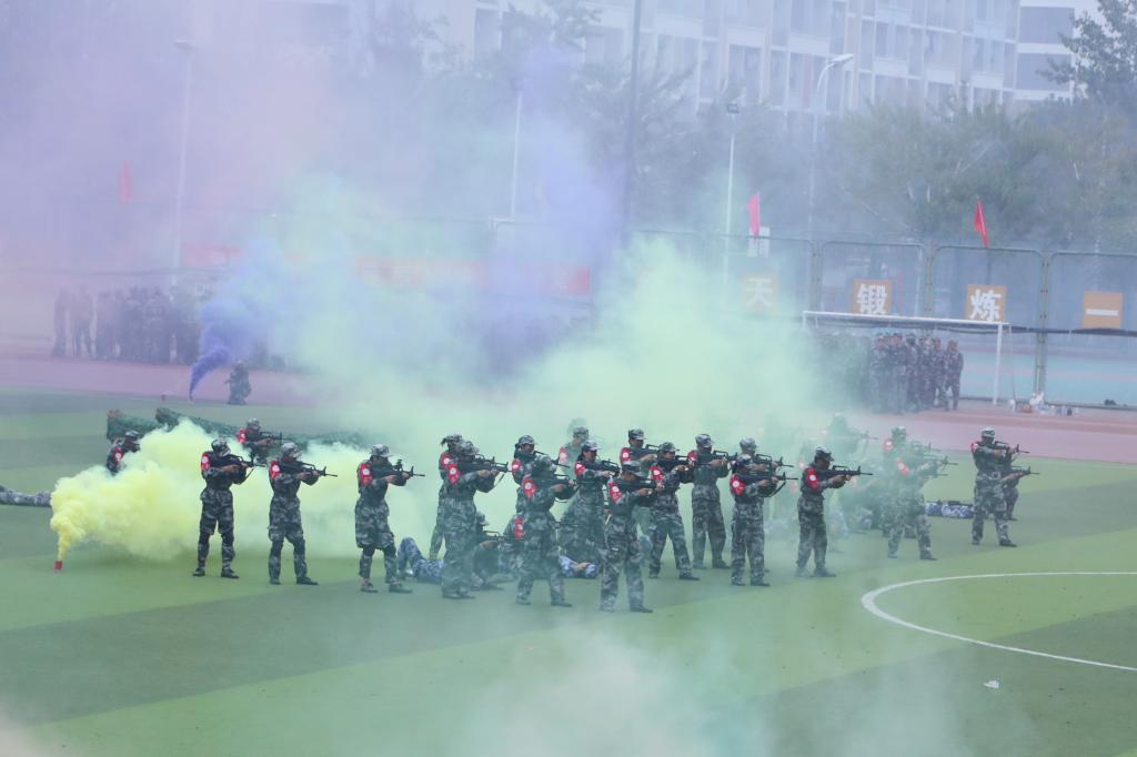 “一日生活制度”科目表演中,学子们严格遵循军营规范,从队伍集合到各项日常训练,动作整齐划一,将严谨的纪律意识融入每一个细节。男子警卫拳及海军旗语表演铿锵有力,连贯的招式展现出扎实的训练功底。战场综合演练行动敏捷,策略精湛;应急棍术表演铿锵有力,刚劲沉稳,充分彰显了新时代青年的果敢刚强及豪迈气概,为本次成果汇报画上圆满句号。