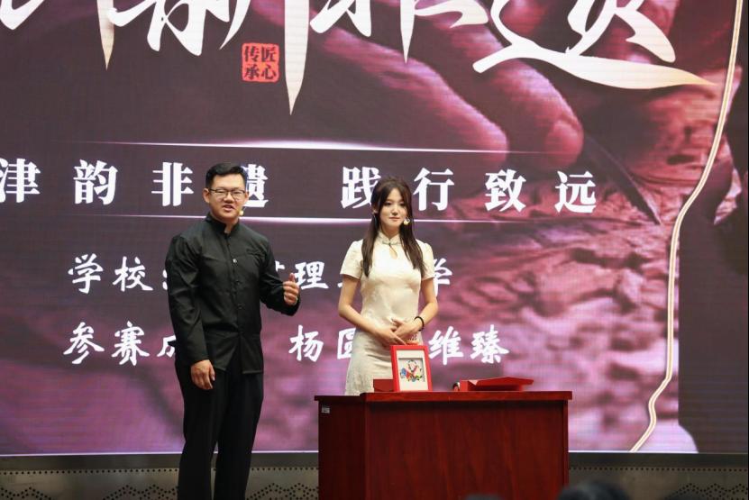 近日,学校语言文化学院2022级英语专业学生杨圆、宋维臻,在“牢记嘱托、见行见效”天津市第三届基层理论宣讲员风采展示活动中取得佳绩,其文艺类作品《津韵非遗 践行致远》凭借创新性的宣讲形式与深刻的理论内涵荣获三等奖。