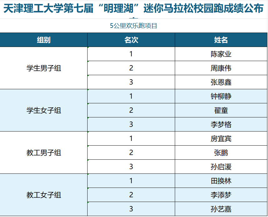 经过激烈的角逐,健康跑、欢乐跑两大项目的学生组(男女)、教工组(男女)前三名相继产生。