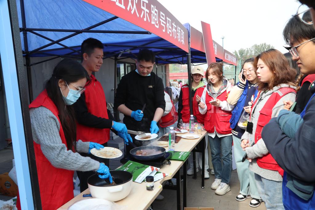赛道两旁,由师生组成的拉拉队热情洋溢、高声呐喊,为参赛者加油助威。赛事组委会在全赛道为本次比赛配备了能量补给站和医疗急救点。200余名学生志愿者身着红色马甲,在导引、计时、补给等岗位上各司其职,以热情服务为赛事保驾护航。