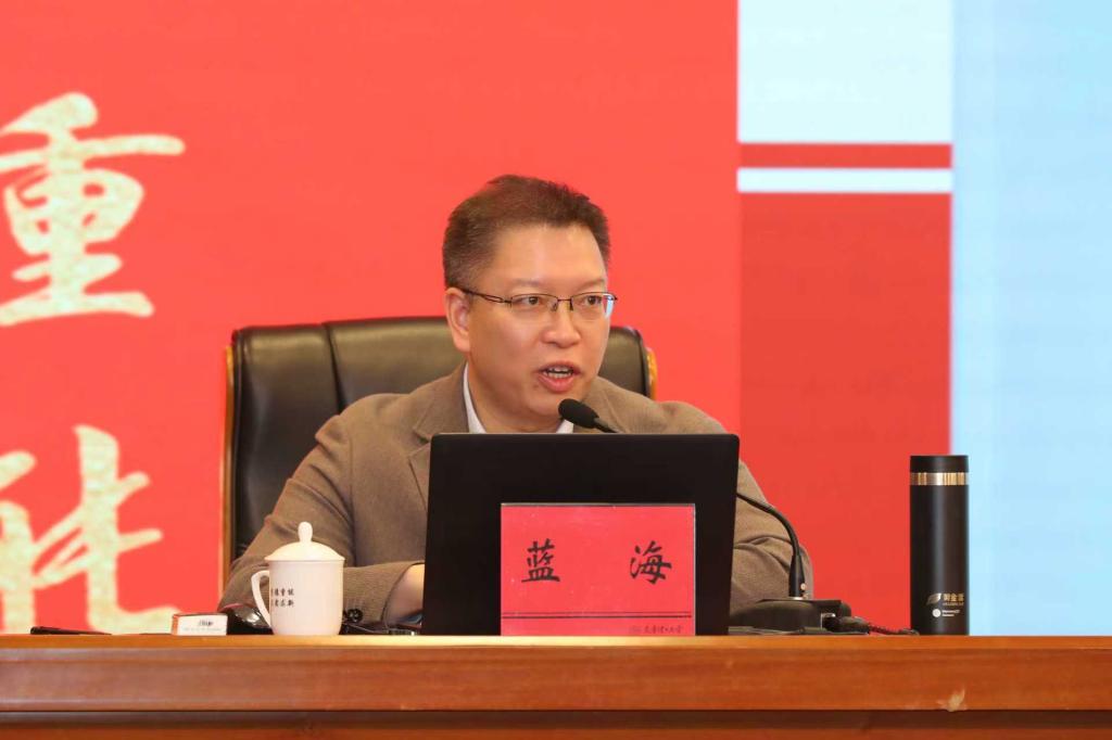 10月29日下午,学校在图书馆报告厅举办《习近平谈治国理政》第五卷专题学习辅导报告会,邀请南开大学马克思主义学院副教授蓝海作专题辅导报告。校党委书记、校长练继建出席报告会。校院两级党委理论学习中心组成员、全体处级干部、基层党支部书记代表、马克思主义学院思政课教师代表近400人参加会议。