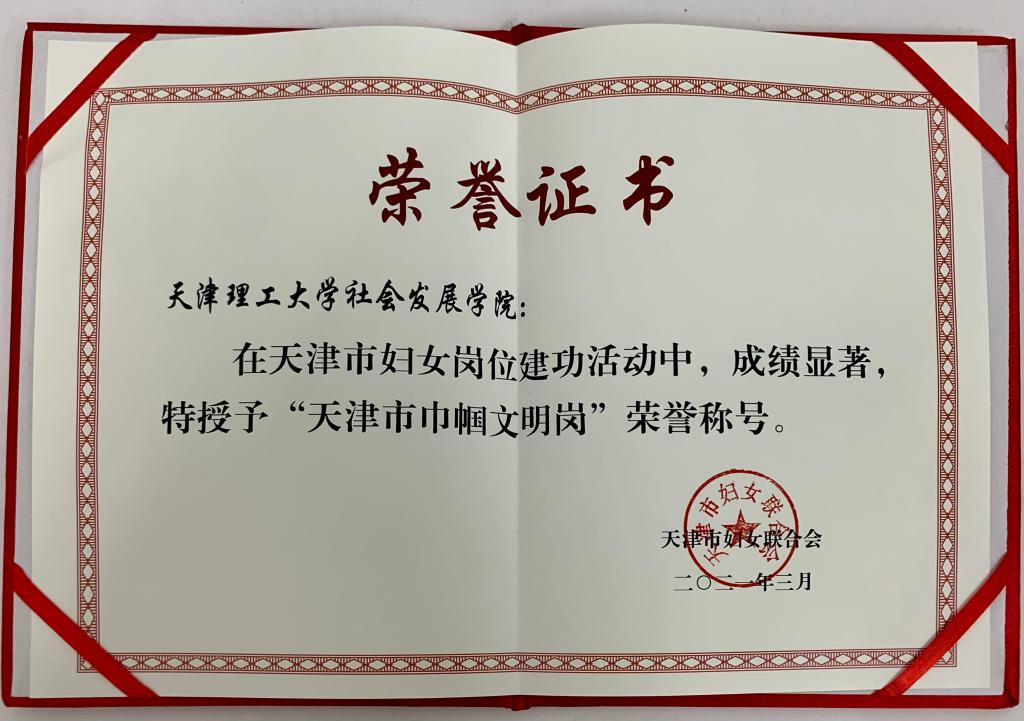 日前,天津市妇联下发《关于表彰天津市妇女岗位建功先进集体、先进个人的决定》,贝博社会发展学院荣获“天津市巾帼文明岗”荣誉称号。