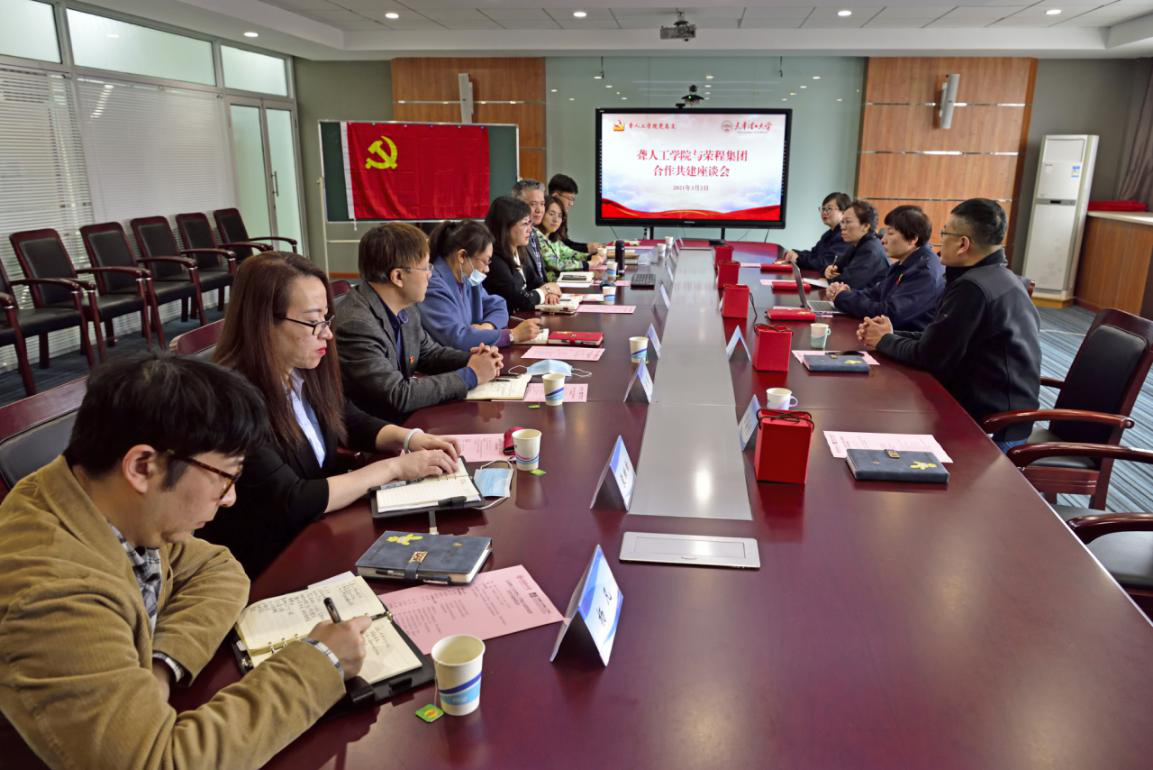 3月2日,荣程集团时代记忆展览馆总经理王延琪、副总经理赵军一行4人来贝博调研,校党委副书记杜长有会见来访一行,学工部、就业创业指导中心和聋人工学院相关同志参加调研座谈。