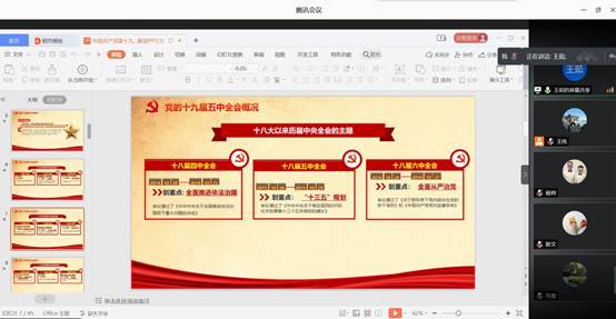 11月10日,理学院党委及中心组专题学习《十九届五中全会公报》、《中共中央关于制定国民经济和社会发展第十四个五年规划和二〇三五年远景目标的建议》,要求学院党委委员将学习宣传贯彻全会精神作为当前和今后一个时期重要政治任务,带领学院师生将力量凝聚到落实全会确定的各项目标任务上来。