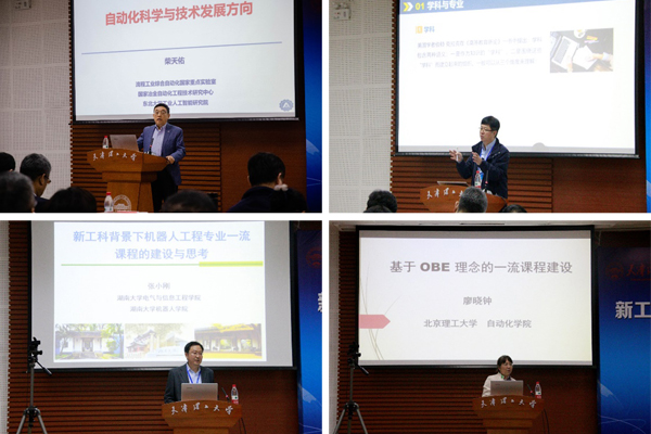 会上,柴天佑院士作了题为《自动化科学与技术发展方向》的报告,介绍了自动化科学与技术面临的机遇与挑战,指出了自动化技术的发展方向。乔俊飞教授作了题为《新时期自动化类专业建设的思考与探索》的报告。湖南大学张小刚教授作了题为《新工科背景下机器人工程专业一流课程建设与思考》的报告。廖晓钟教授作了题为《基于OBE理念的一流课程建设》的报告。大会报告从专业建设、课程建设的不同角度进行了深刻思考,提出了独到见解。