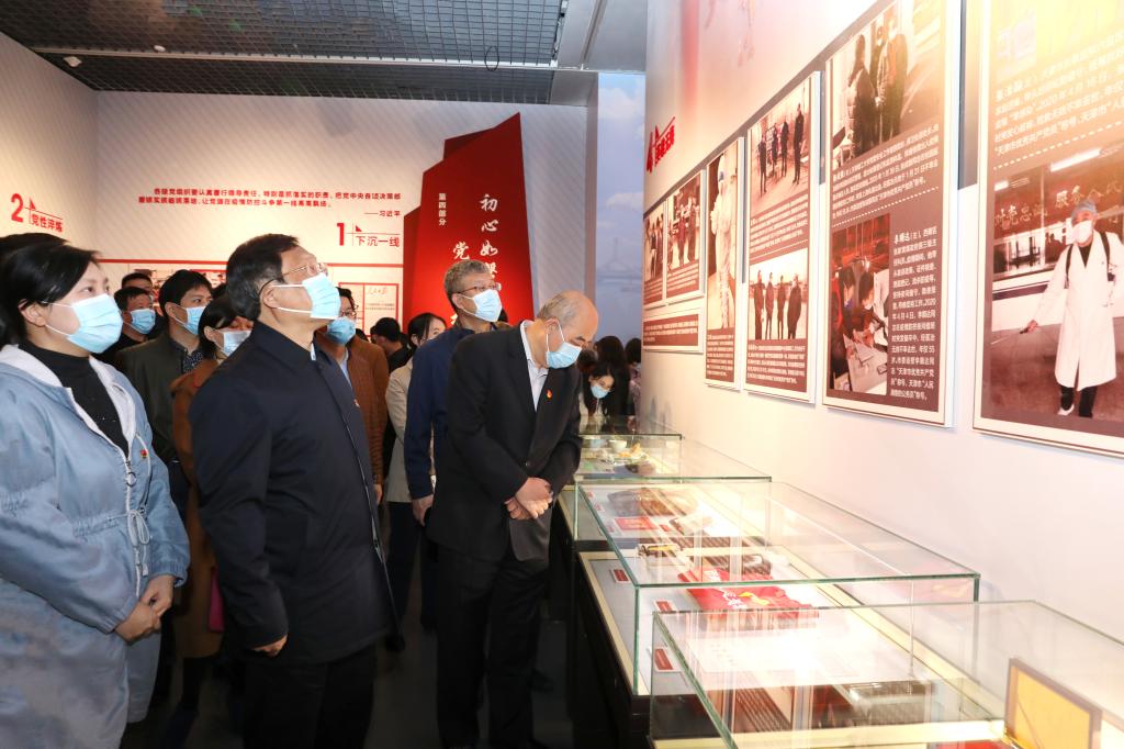 “人民至上——天津市抗击新冠肺炎疫情纪实展”以大量实物、照片、视频等形式,生动展示了在习近平总书记亲自指挥、亲自部署和党中央坚强领导下,全市上下坚定信心、同舟共济、科学防治、精准施策的战“疫”历程。在“初心如磐,党旗飘扬”展板前,大家纷纷驻足缅怀在抗击疫情一线牺牲的贝博党委安全工作部原部长张成银同志,一幅幅照片、一段段视频、一组组实物,引起观展同志们的强烈共鸣。