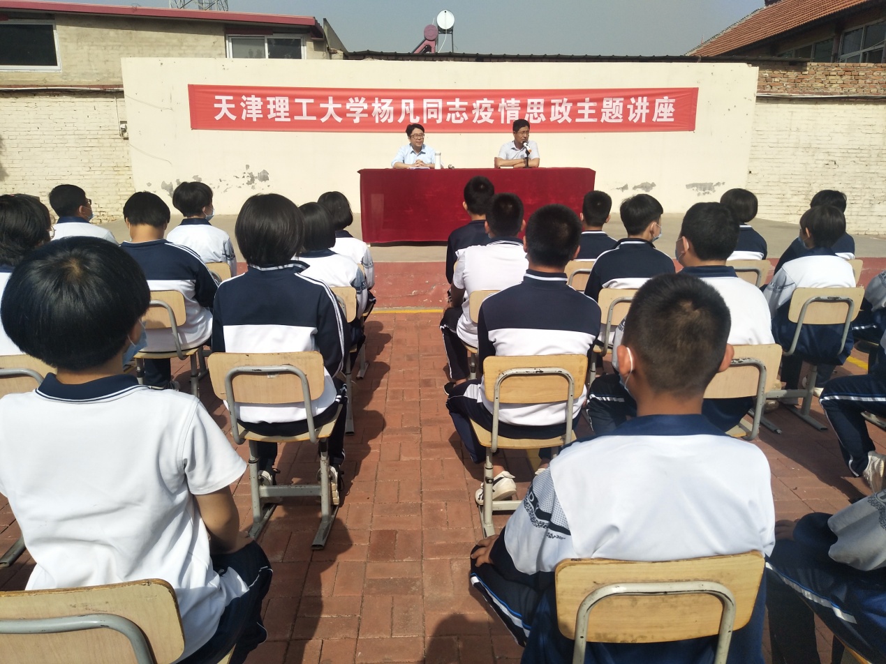 受贝博大中小幼思政课一体化建设联盟单位、天津市蓟州区下窝头镇初级中学的邀请,6月3日上午,贝博马克思主义学院杨凡赴该校开展抗击疫情思政主题讲座。下窝头镇初级中学校长吴红伟主持,学校师生约300人聆听讲座。