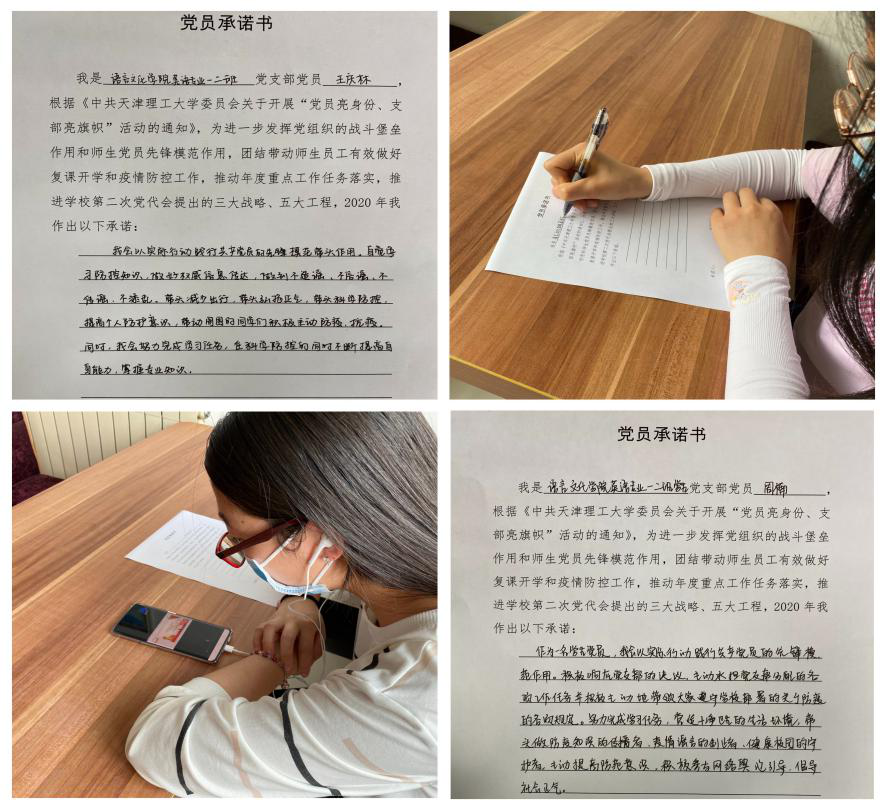 学生党支部组织学生党员有序开展承诺践诺活动,大家积极反响,纷纷立足个人实际,向党组织做出郑重承诺。党员学生表示要发挥出年轻人的闯劲,学会辨析谣言,提升思维能力,起到年轻党员的模范带头作用,以习近平总书记关于疫情防控的重要指示精神为思想指引和实践坚守。