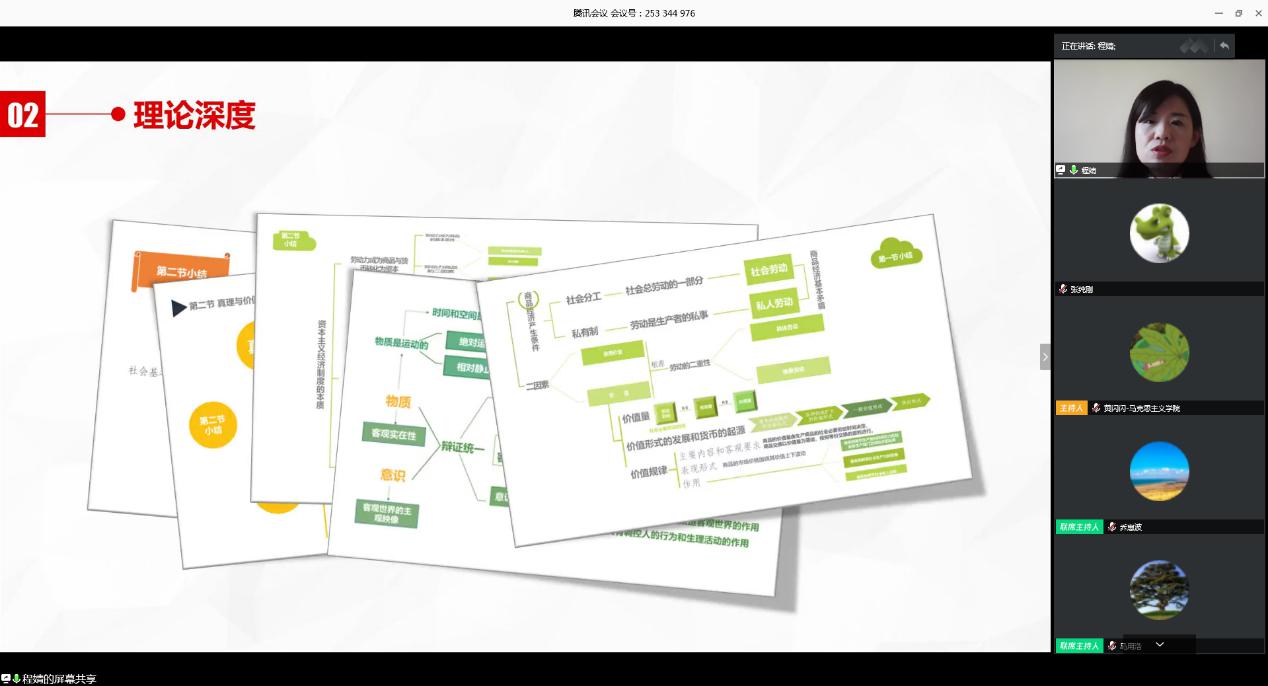 此次集体备课会是在新冠肺炎疫情的特殊背景下召开的,学院以线上的方式组织集体备课会进行经验分享,素材积累,将进一步推动思政课教学改革创新和教学质量提升,为建设思政课“金课”和“智慧课堂”提供了宝贵经验。