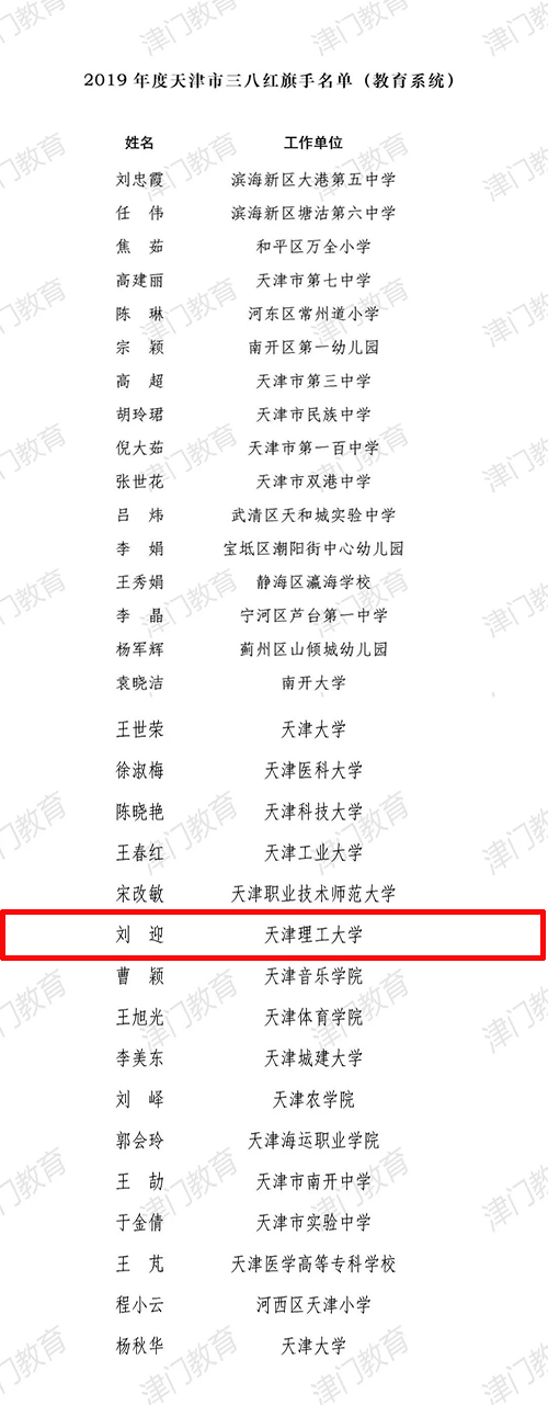 近日,市教育两委公布被市妇联授予“天津市三八红旗手”荣誉称号和“天津市三八红旗集体”荣誉称号的个人和集体名单,贝博团委书记刘迎同志荣获“天津市三八红旗手”荣誉称号。市教育两委号召全体师生、干部职工以受到表彰的优秀女性和集体为榜样,爱党爱国、忠于人民,敬业勤勉、追求卓越,挺身而出、英勇奋斗,以奋发有为的进取精神和真抓实干的实际行动,只争朝夕、不负韶华,在夺取疫情防控和经济社会发展双胜利中无私奉献,在决战决胜全面建成高质量小康社会中汇聚天津教育力量。