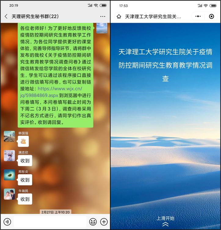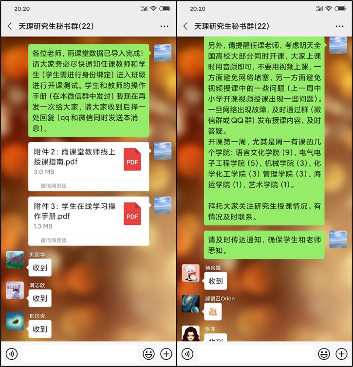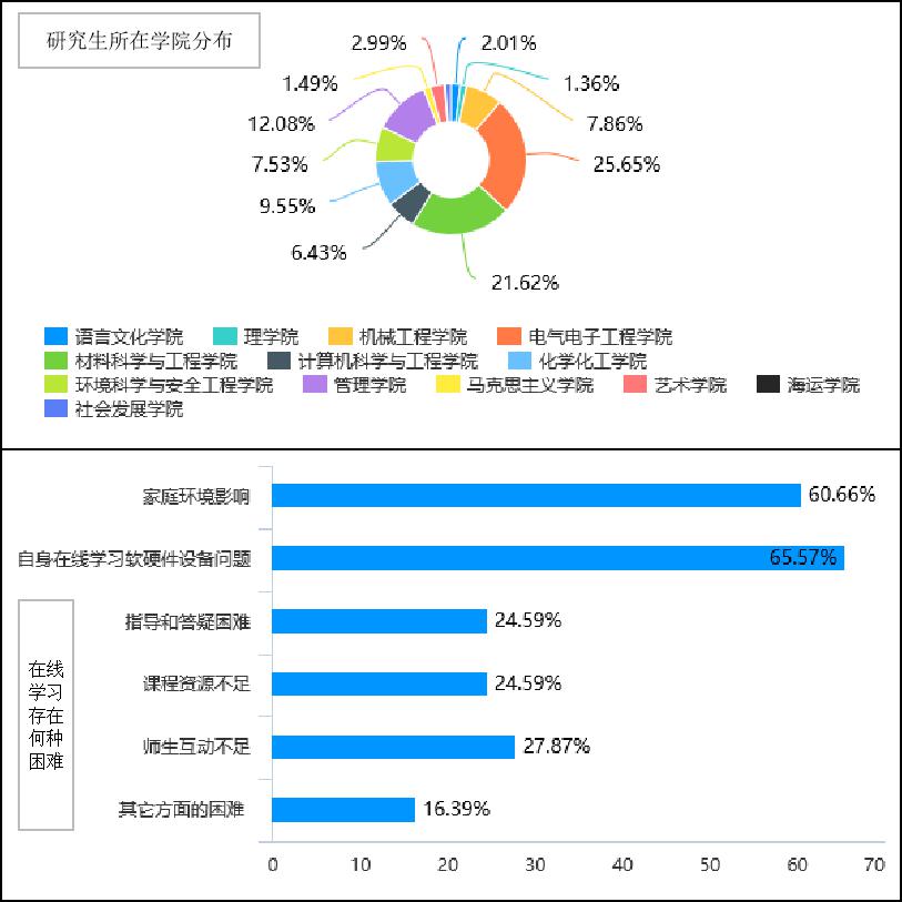 与此同时,研究生院通过多方收集意见和建议,检视在线授课出现的问题,积极改进。在线授课第二周,面向全体在校研究生开展在线授课和导师指导情况的问卷调查,及时获取研究生的反馈意见,对调查结果进行细致分析,将同学们的意见和建议及时传达给学院的每一位授课教师和研究生导师,自上而下、多措并举改进和创新工作方式方法。