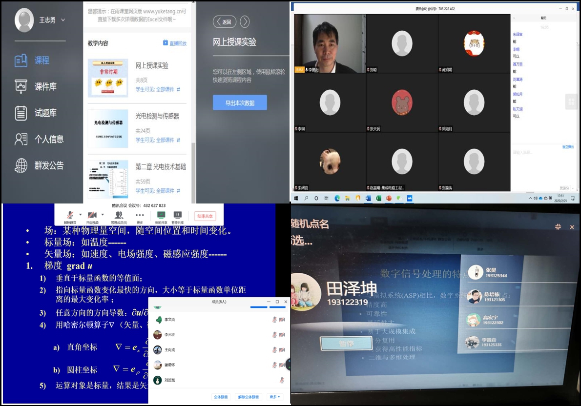 细致周密,监督到位,实时监控教育教学情况并改进。2019-2020学年度春季学期课程教学主要包括硕士公共基础课、专业基础课、专业选修课,截至目前为224个教学班开设在线课程,线上听课研究生1059人,涉及授课教师193名。各授课教师已形成采用雨课堂/其它备用平台授课教学,同时与微信群课前推送教学资料、课后答疑指导相结合的稳定在线教学模式。