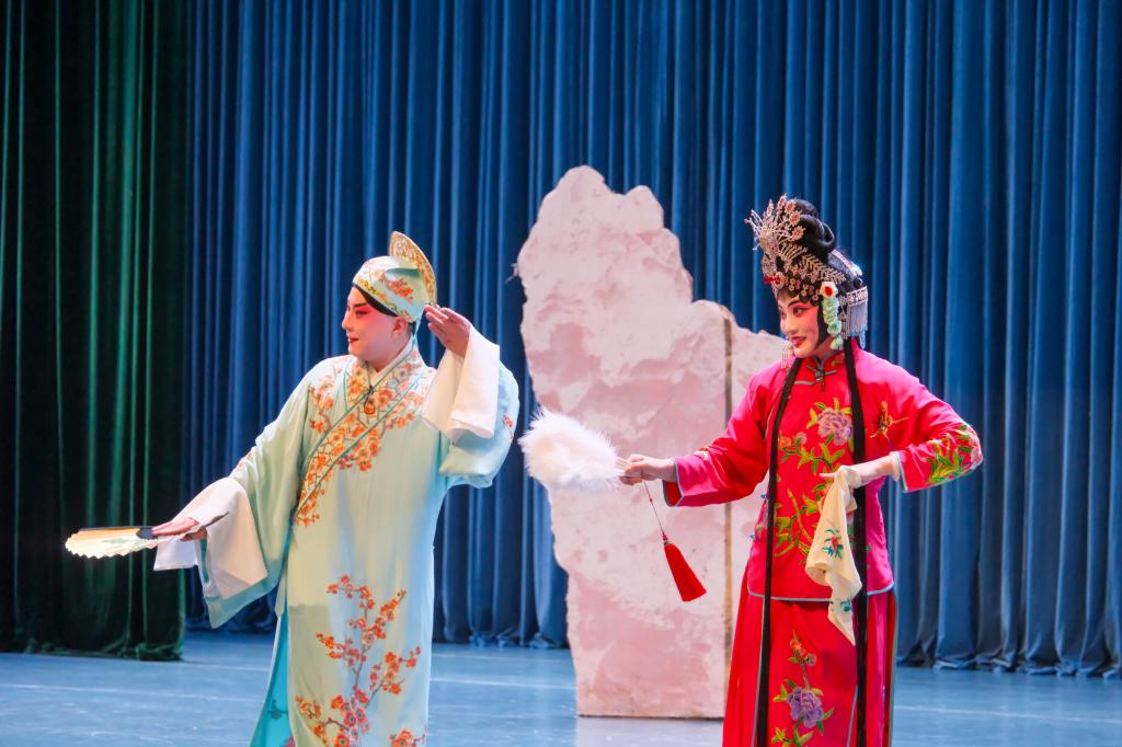 为弘扬中华美育精神,坚定文化自信,市教委面向天津市传统文化传承校和市直属高校开展戏曲进校园活动。贝博作为天津市首批高校中华优秀传统文化艺术传承基地有幸被列入此项活动中。11月14日晚,北方演艺集团率天津市评剧白派剧团在贝博大学生活动中心剧场演出了“青春版”评剧《花为媒·坐楼·花园》,千余名师生沉浸式体验了这场盛宴。