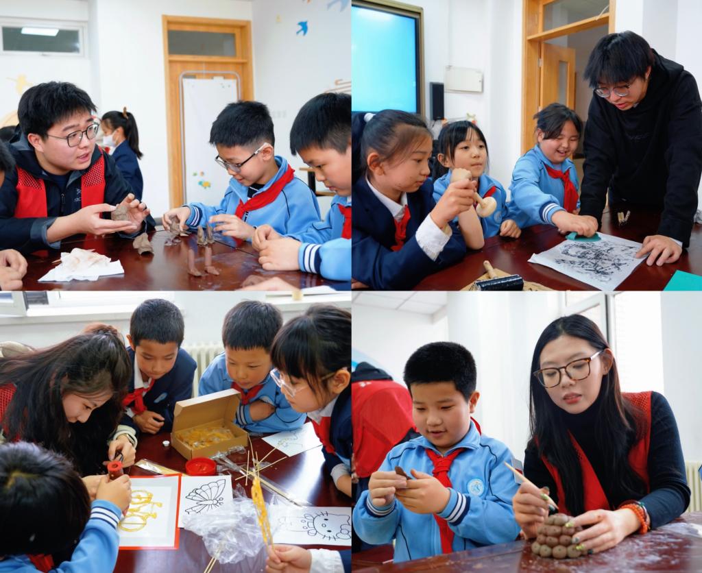 艺术学院志愿者融合非遗历史起源、发展脉络、传承故事和技法表现等内容,为小学生们带来启发式非遗文化课程。课程设计以小学生喜闻乐见的话题为切入点,由浅入深、丝丝入扣,课堂氛围幽默风趣、轻松融洽。在互动环节,小学生们踊跃参与,不仅学到了非遗知识,更点燃了同学们对非遗文化的热情。