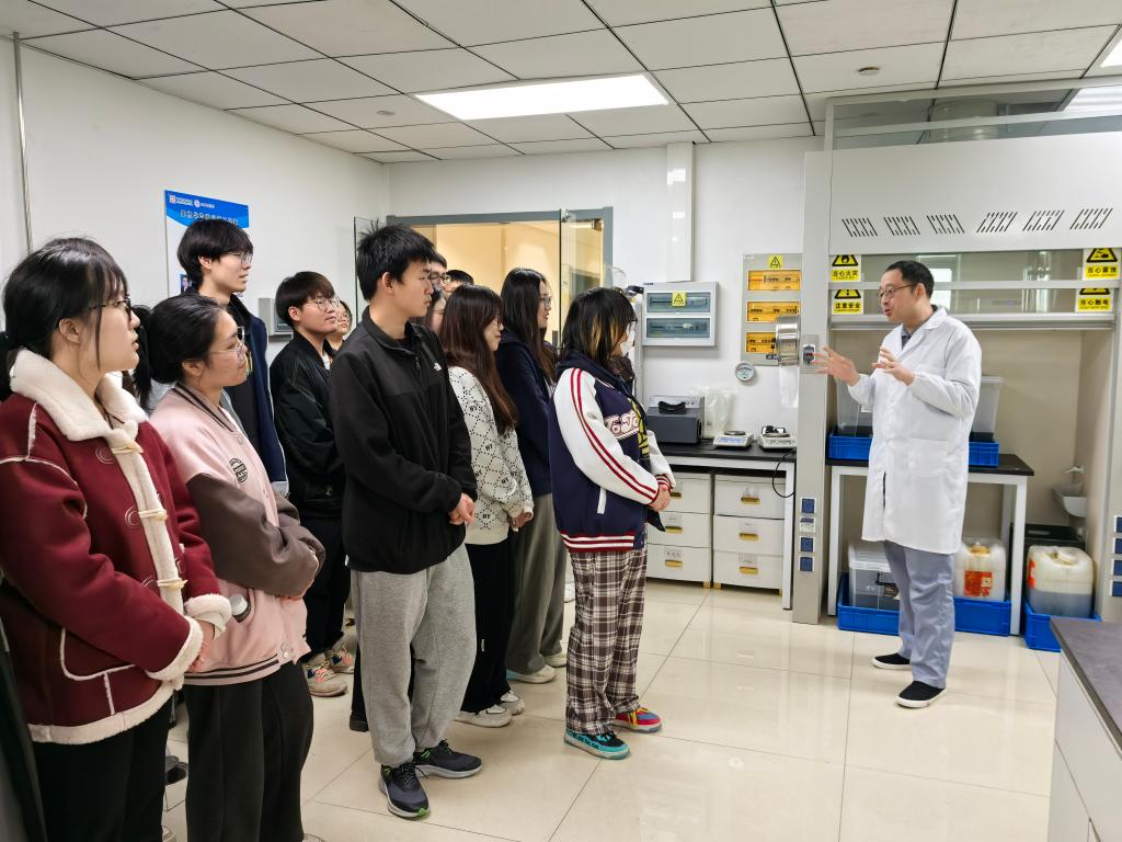 在企业生产车间与研发中心,师生一行跟随企业工作人员深入了解我国医药产业的发展历程、核心技术攻关成果及企业在服务民生健康中的使命担当。随后,学院专业教师凌宏雷以“一粒药的诞生”为主线,结合传统中药大蜜丸制备流程与现代片剂生产技术,开展沉浸式实景教学。他以行业关注的“缓释制剂技术壁垒”为例,剖析我国制药领域面临的挑战。他的讲解引发学生对专业价值的深度思考。