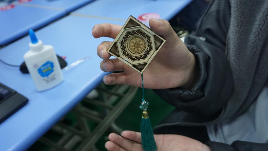 在课程中,课程组教师充分利用先进的激光切割技术,为“藻井”制作特色项目注入了科技活力。激光切割技术以其高精度、高效率的特点,精准地切割出各种复杂图案,为藻井冰箱贴的制作提供了有力支持。学生们在专业教师的指导下,深入学习了藻井的历史文化背景和艺术特点,通过图片、视频等多种方式领略其独特魅力。