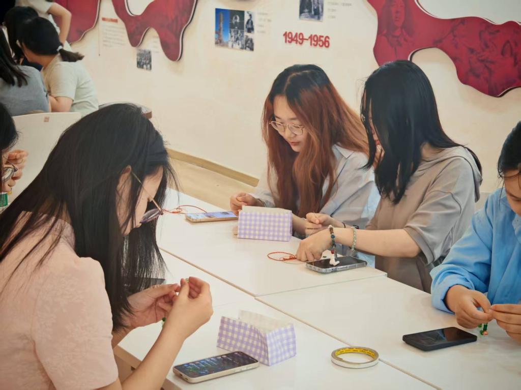 活动伊始,学院心贝博作负责教师生动讲述了端午节的由来与端午赛龙舟、吃粽子等习俗。同学们沉浸其中,增强了文化认同感与民族自豪感。在手链编织区,五彩丝线与粽子挂件、配饰巧妙搭配,同学们边交流编织技巧、边分享趣事;在DIY串珠区,大家发挥创意,用彩色珠子串出个性化手串。同学们相互欣赏作品,现场充满欢声笑语。此次活动通过手工协作,帮助大家放松了身心、增进了情感联结。