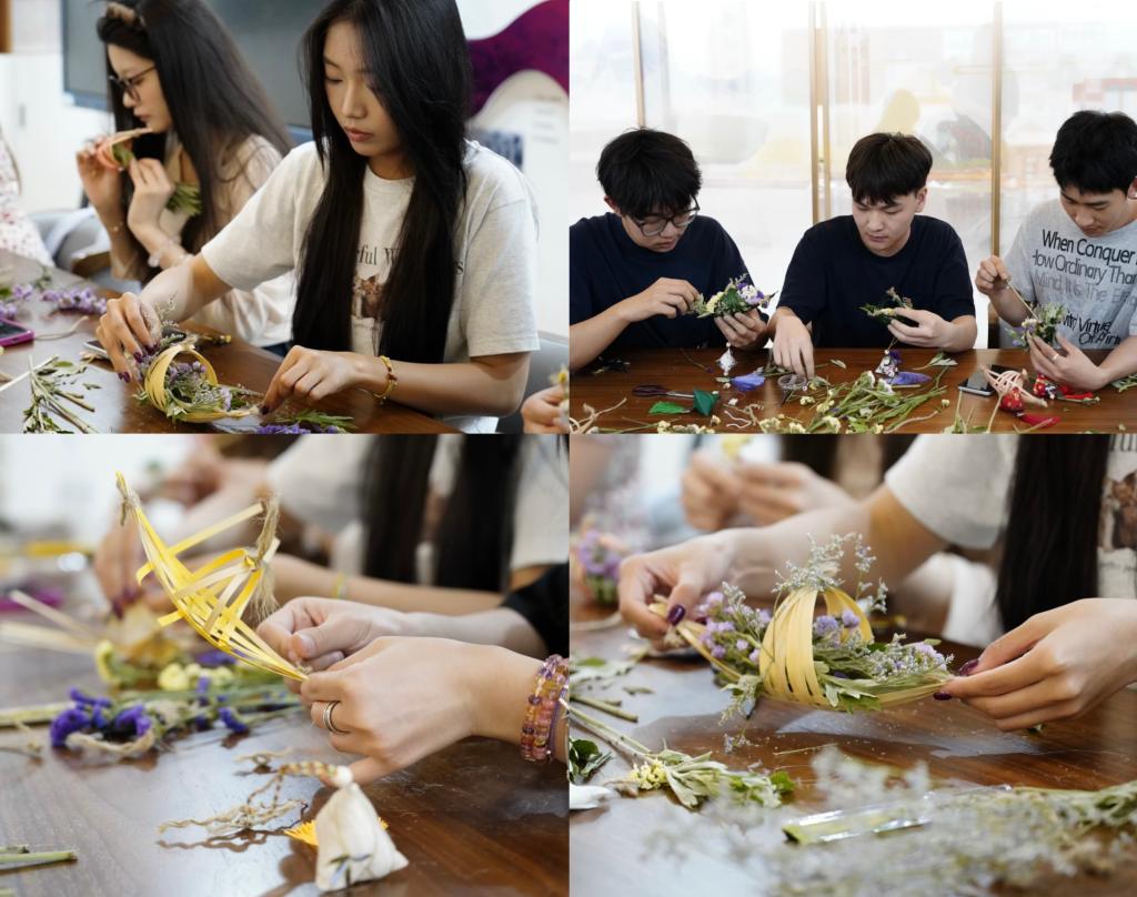 近日,艺术学院“体验式”非遗艺术实践课堂团队走进天津市和平区五大道友谊里社区,为社区的独居老人送上实用性与观赏性兼具的竹编艾草香包,送上承载健康平安的端午祈愿。