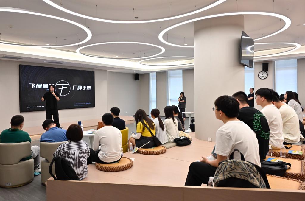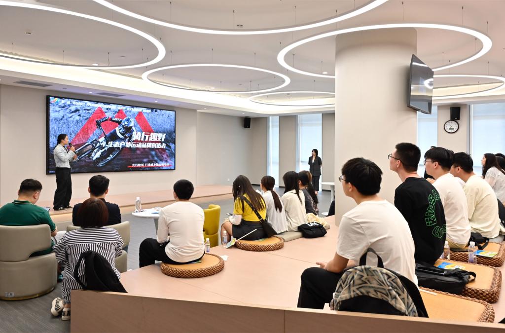 在首届“创在南开”青年创新创业大赛获奖项目分享环节中,生态户外运动品牌“骑行趣野”创始人仇越和飞屋文化影音传播工作室负责人董吉亮结合自身经历,分享了创业心得体会,生动展现了从创意孵化到项目落地的实践路径,引发广大师生的热烈讨论与深入思考。座谈交流结束后,师生一行参观了天开高教科创园综合服务中心,详细了解了园区在企业全生命周期服务中的创新举措和配套支持,进一步拓宽了对创新创业环境的认知视野。